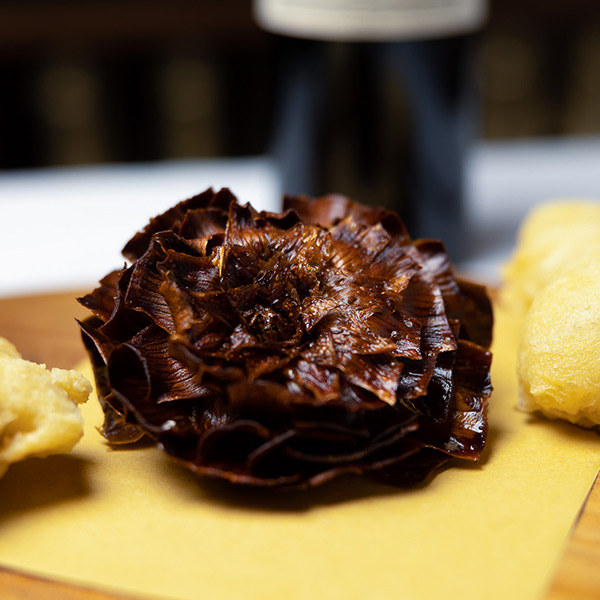 Fiori di zucca, filetti di baccalà, pasta fatte in casa, carbonara, amatriciana, cacio e pepe, abbacchio, carciofi alla giudia, dolci meravigliosi fatti in casa. Tutti i nostri piatti sono squisiti. A renderli così speciali ci sono la qualità degli ingredienti, il nostro amore per la cucina romana e la passione per il nostro lavoro. Il tutto condito da un pizzico di fantasia.
